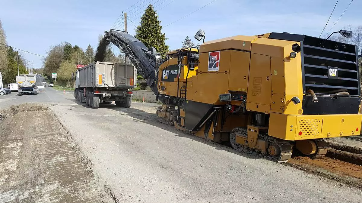 Le terrassement de la chaussée a été réalisé à la raboteuse afin de diminuer le délai d’exécution et de garantir le bon tri et le réemploi des matériaux.