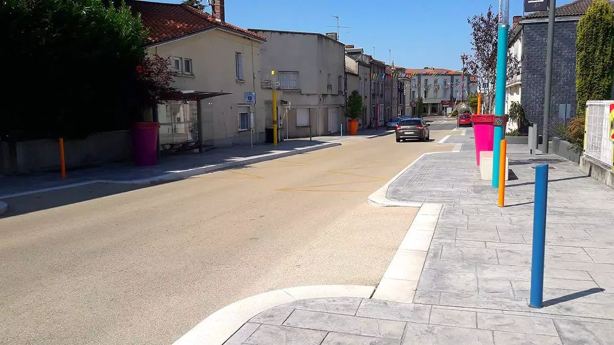 CHARIER a réaménagé voiries, trottoirs et mobilier urbain de l'avenue de Gaulle pour requalifier cette artère principale qui relie l’entrée de la commune de Cerizay au centre-ville sur une longueur de 1500 ml.